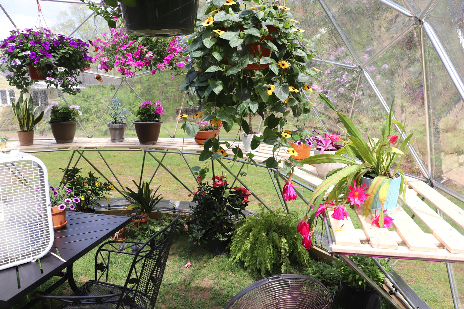Ready for a superior greenhouse design? There is no better shape to resist the wind and snow than a geodesic dome! Choose from three different one-piece vinyl cover fabric types and a range of additional options such as an automatic ventilation system and our popular built-in shelving system.